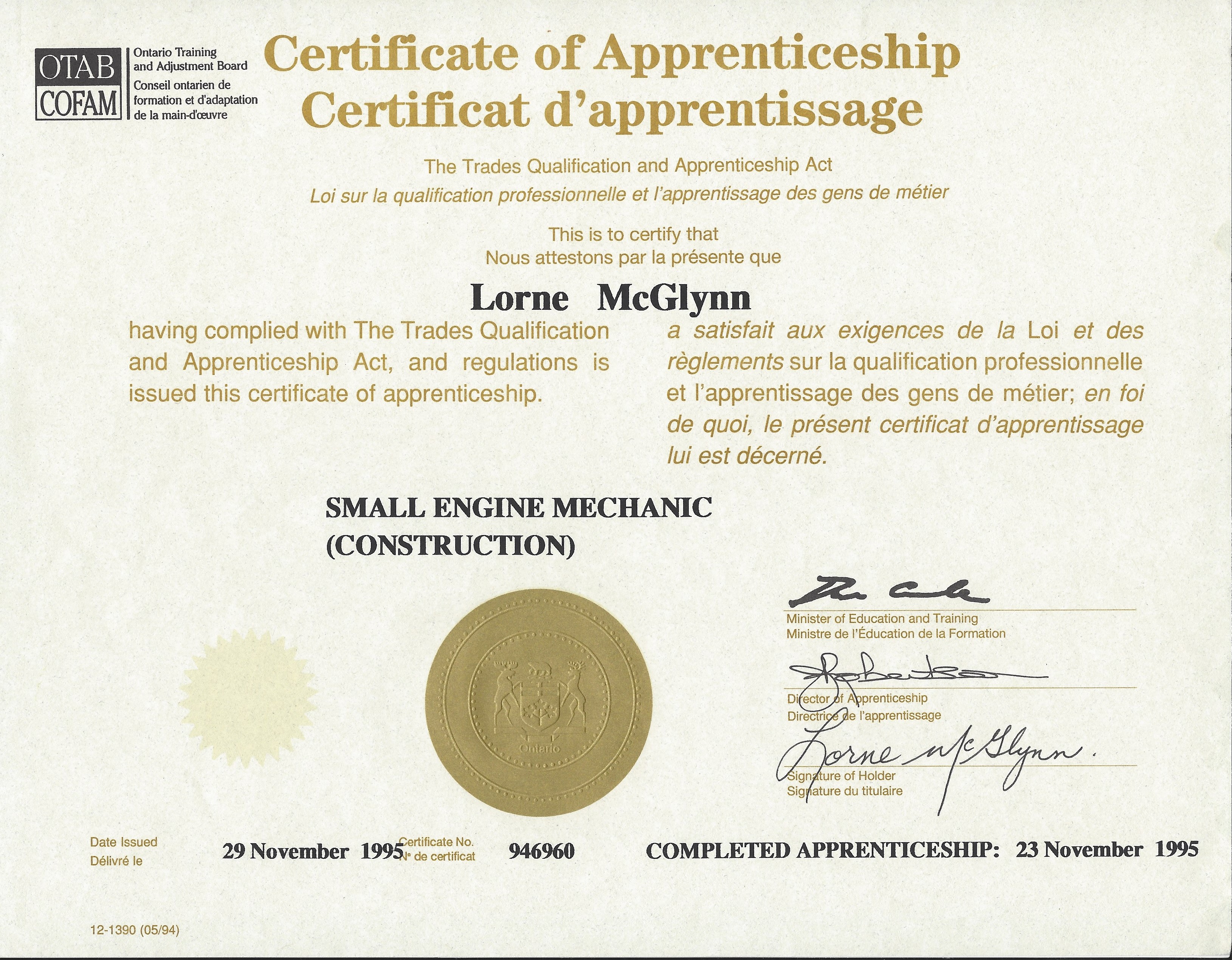 The technology used in construction, Industrial and Farm equipment is becoming more sophisticated with the increase use of electronic and computer-controlled components. As a licensed mechanic I keep up to date on training and technology to ensure the best service to the client.