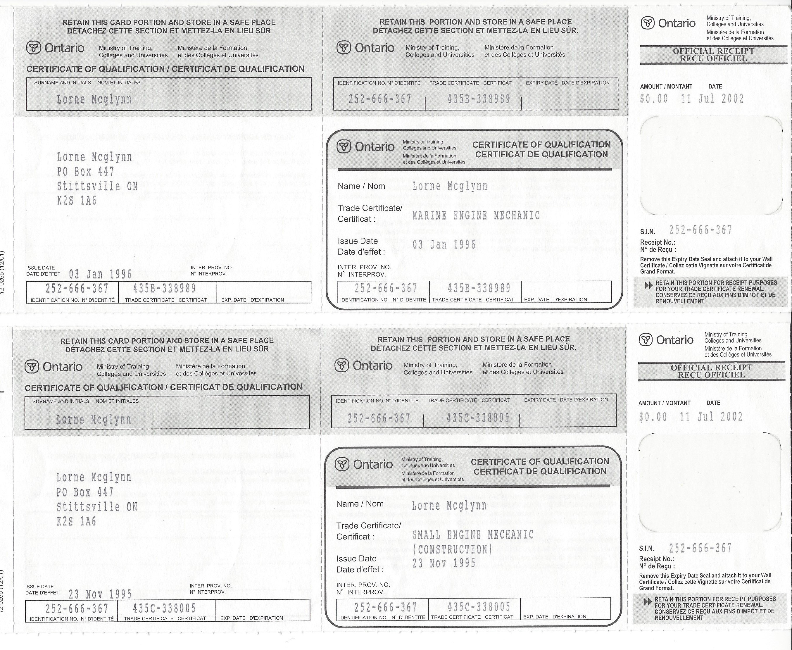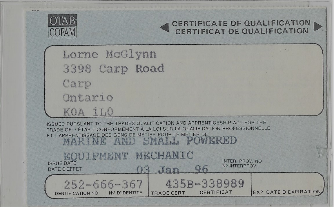 Licensed Technician, Marine. Small engine. Construction Heavy Duty